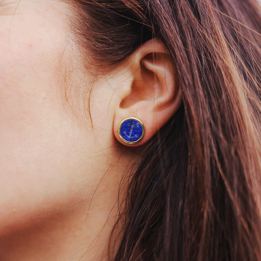 BOUCLES D'OREILLES LAPIS LAZULI GRAVE D'UNE ANCRE DE MARINE