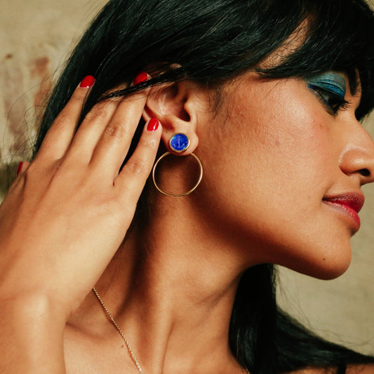 BOUCLE D'OREILLES LAPIS LAZULI GRAVE D'UNE ANCRE DE MARINE